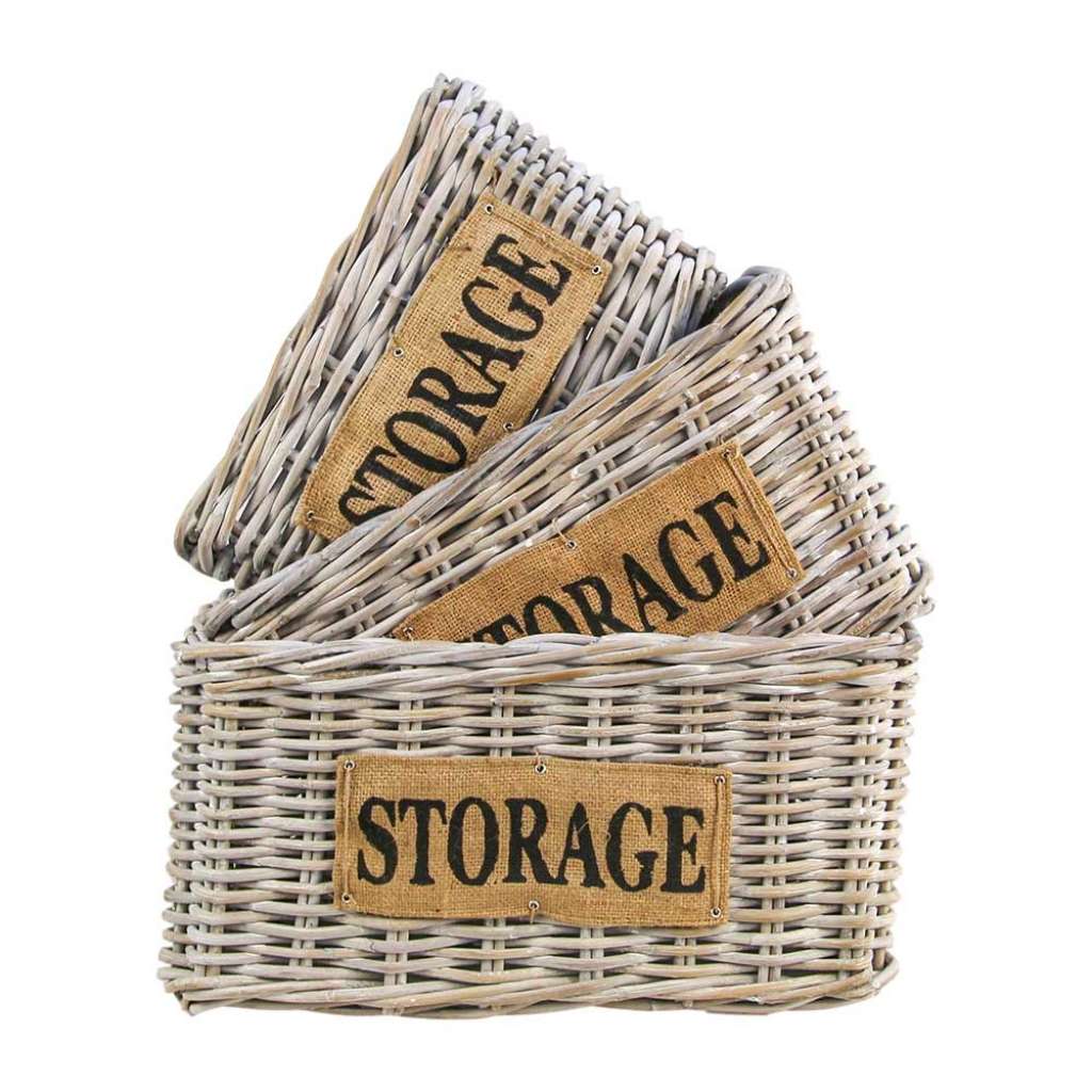Deko Körbe aus Rattan White Wash (3-teilig)