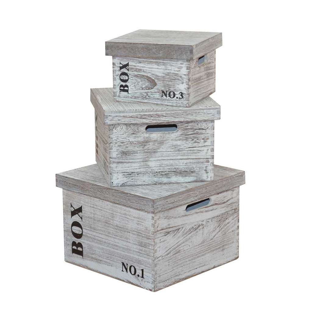 Holzkisten in White Wash Optik Deckel (3-teilig)