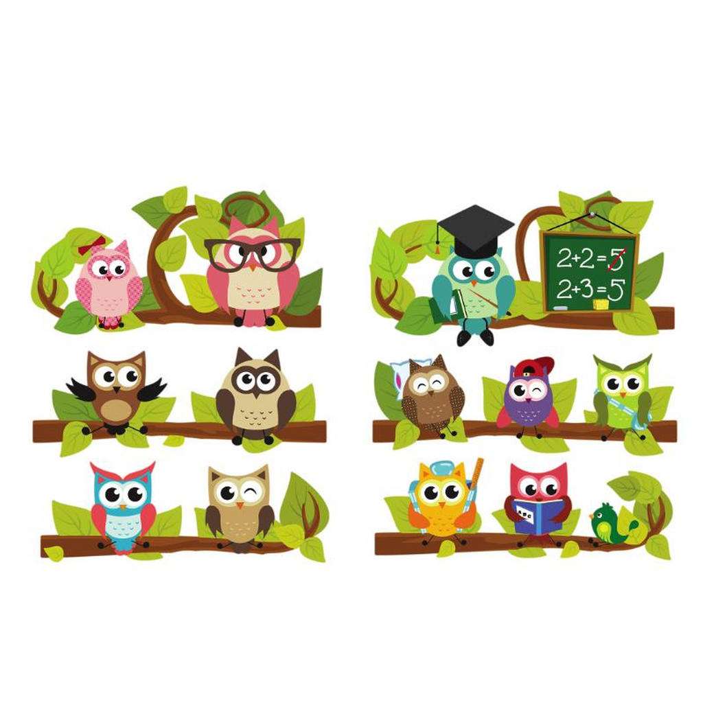 Tierfreunde aufgepasst: Jetzt gibt es tolle Dekosticker mit Eulen-Motiv, die große und kleine Freunde der Comicfiguren begeistern werden. Auf dem ca. 25 x 35 cm (B x H) großen Stickerbogen befinden sich insgesamt 6 selbstklebende Abziehbilder, und die niedlichen Eulen freuen sich schon darauf, mitsamt Schultafel und Lehrer-Eule, ins Kinderzimmer einzuziehen. Ob sorgfältig verteilt oder alle zusammen - diese lustigen bunten Dekosticker mit Eulen-Motiv sorgen für gute Laune!