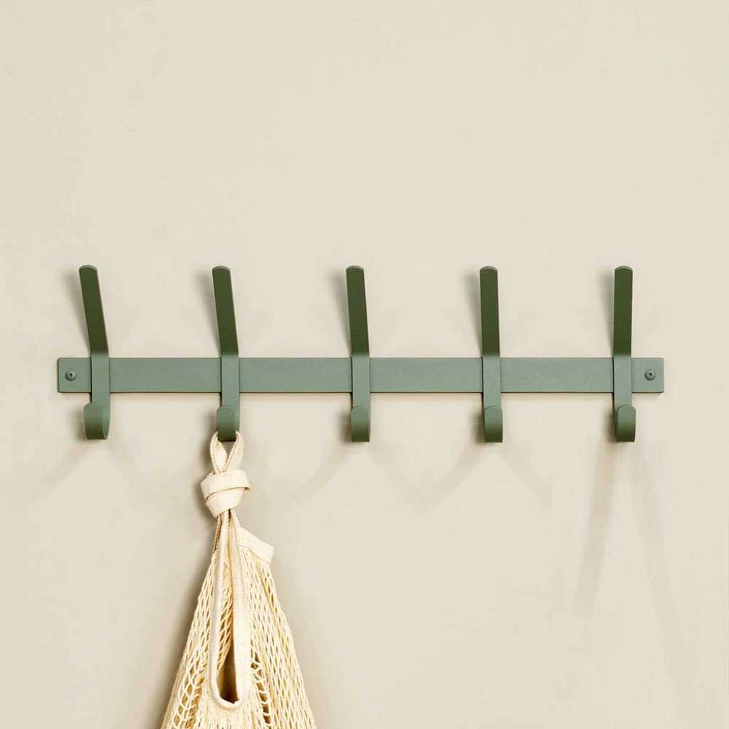Informationen über Metall Wandgarderobe in Graugrün pulverbeschichtet 5 Kleiderhaken