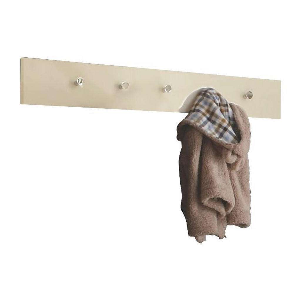 Mit dieser Hakenleiste haben Sie eine praktische Garderobe für Ihren Eingangsbereich! Die Wandgarderobe besteht aus einer Faserplatte, die mit einer chicen Dekorfolie überzogen wurde. Der elegante Hochglanz sowie die edle Cremefarbe schaffen ein wunderbar freundliches Ambiente. An den 5 Haken können Sie Ihre Hacken und Handtaschen bequem aufhängen. Diese Hakenleiste ist einfach praktisch!
