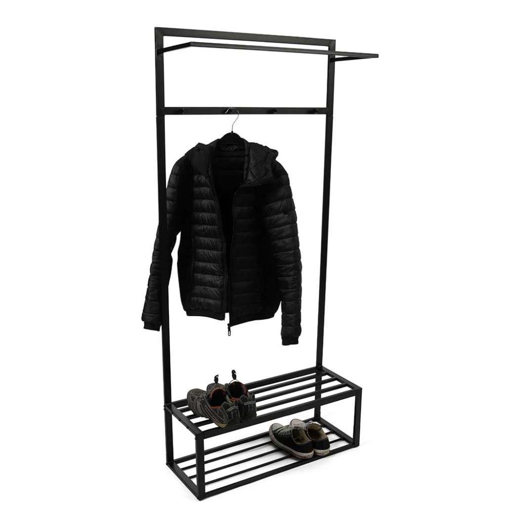 Informationen über Metall Garderobenstaender in Schwarz 80x175x30 cm