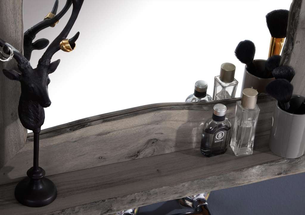 Informationen über Badspiegel Akazie 70x12x78 grau lackiert LIVE EDGE #603