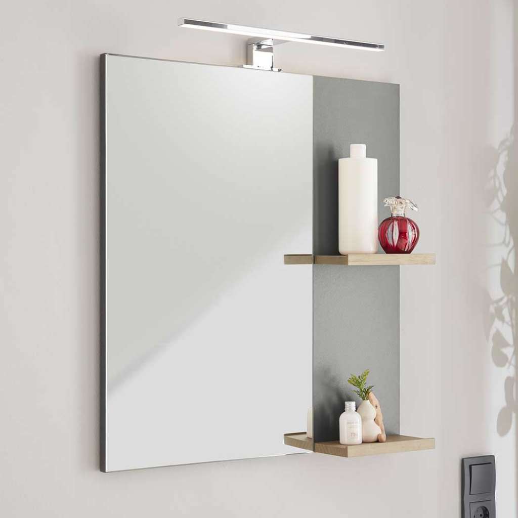 Informationen über Badspiegel mit Ablagen in Eiche Holzoptik & Anthrazit 60 cm breit
