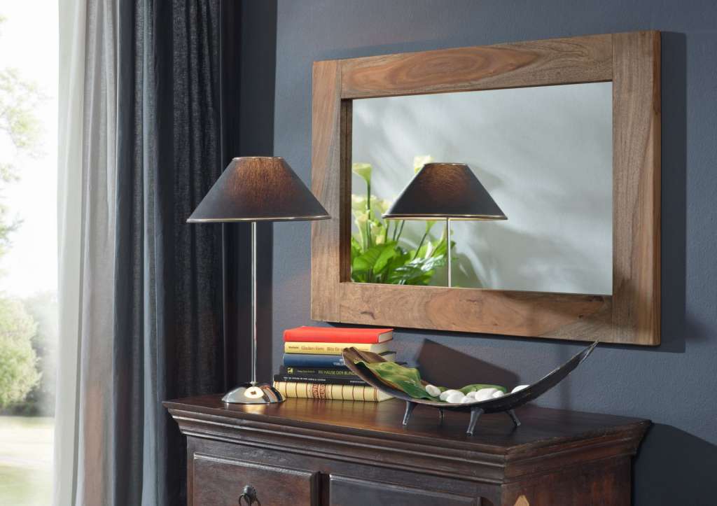 Richtig eingesetzt wird der Palisander / Sheesham Spiegel zu einem unverzichtbaren Wohnaccessoires und vergrößert einen Raum optisch. Er ist aus Massivholz gefertigt und geölt. Maße: L:90cm x B:3cm x H:60cm