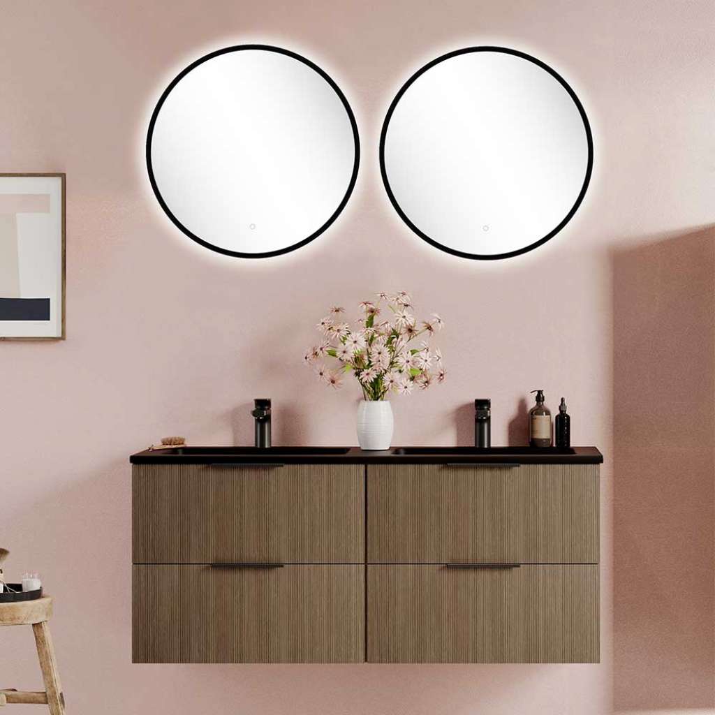 Badmöbelset Waschplatz Set mit Holzwerkstoff Oberfläche und Metallgriffen (dreiteilig) - Dreiteilig - Mit Metallgriffen - Zerlegt, zum leichten Selbstaufbau (Montageanleitung liegt bei) - In modernem Design - Breite Variante ist mind. benötigte Gesamtfläche, Einzelmaße sind unten separat aufgeführt - Mit LED Beleuchtung - Aus deutscher Produktion - Badezimmerset aus Holzwerkstoff und Spiegelglas - In Holzoptik melaminbeschichtet - Für Energieeffizienzklasse G - Bad-set in Eiche dunkel - Waschplatz set 120 cm Breit, 114 cm Hoch, 47 cm TiefInformationen zur Lieferung:Die Zustellung dieses Produktes erfolgt per Spedition. Sie werden vor der Auslieferung durch die ausliefernde Spedition kontaktiert.Terminvereinbarung: Sie werden frühzeitig (ein paar Tage im Voraus) durch die ausliefernde Spedition kontaktiert und Ihnen der Auslieferzeitpunkt mitgeteilt. Die Kontaktaufnahme erfolgt per Telefon. Bei telefonischer Nichterreichbarkeit werden Sie per Postkarte über das Auslieferdatum informiert.Die Lieferung erfolgt aus Kostengründen Frei Bordsteinkante (bis zur ersten verschlossenen Tür). Für den weiteren Transport der Ware sind Sie eigenverantwortlich.Die Auslieferung erfolgt von Montags bis Freitags. Eine Zustellung an Sonn- und Feiertagen ist nicht möglich.