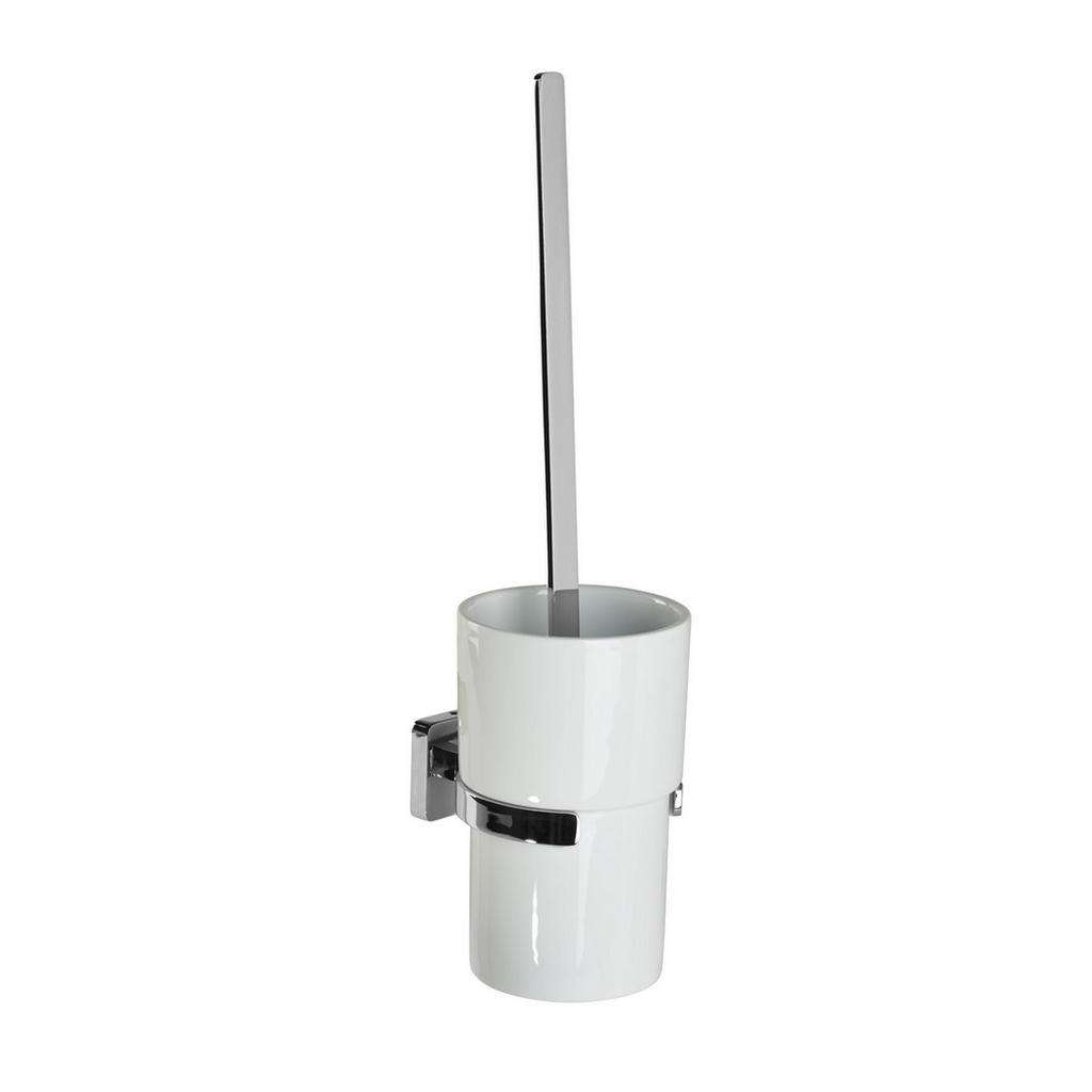Diese WC-Bürstengarnitur aus Keramik mit Wandmontage lässt sich ganz einfach neben Ihrer Toilette installieren. Die Halterung sowie der Bürstengriff sind aus verchromtem Messing gefertigt und bleiben damit rostfrei. Durch den hohen Keramikbehälter ist die Bürste mit Nylonborsten vor Blicken verborgen. Nach einiger Zeit können Sie den abnehmbaren Bürstenkopf durch einen neuen ersetzen. Die Optik in Chromfarben und Weiß ist puristisch und harmoniert mit Ihrem modernen Badezimmer. Diese WC-Bürstengarnitur aus Keramik mit Wandmontage ist hochwertig und designorientiert zugleich!