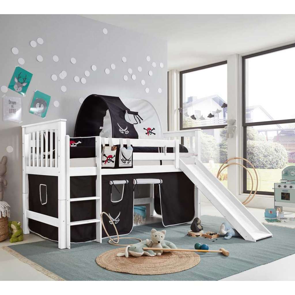 - Hochbett Weiß und Schwarz - Spielbett Buche Massivholz und Webstoff - Kinderhochbett Breite: 211 - Abenteuerbett Höhe: 199 - Kinderbett Tiefe: 209 - Piratenbett Liegemaße: 90x200 - Rutschbett Ohne Beleuchtung - Hochbett kind Zerlegt, zum leichten Selbstaufbau (Montageanleitung liegt bei) - Hochbett für kinder Lieferung ohne Matratze - Jugendhochbett Inkl. 1 x Rollrost - Kinderbett pirat Füße: 4-Fuß Gestell aus Holz - Hochbettgestell Massivholz Oberfläche und Lackiert - Piratenhochbett Ohne Rollen - Spielhochbett Pirat Motiv - Spielbett pirat Inkl Rutsche - Rutschenbett Inkl Leiter: Leiter und Beidseitig montierbar - Kinderbettchen Inkl Vorhang - Rutschebett Inkl Stofftunnel - Kinderzimmer bett Mit Turm - Bett für kinderzimmer Belastbar 1-99 KGInformationen zur Lieferung:Die Zustellung dieses Produktes erfolgt per GLS-Paketdienst. Sollten Sie bei der Erstzustellung nicht angetroffen werden, hinterlässt der Zusteller in Ihrem Briefkasten eine Benachrichtigungskarte mit dem Hinweis auf eine zweite Anlieferung. Sollte in Ihrer Nähe ein GLS-Paketshop sein, so wird die Ware dort hinterlassen und Sie können die Ware dort abholen. Die Auslieferung erfolgt von Montags bis Freitags. Eine Zustellung an Sonn- und Feiertagen ist nicht möglich.