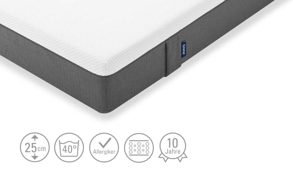 Unser Produkt Emma Kaltschaummatratze Emma Original gibt es in den Farben: weiß Der Hersteller Emma ist bekannt für die hohe Qualität der verwendeten Materialien. Zudem hat das Produkt folgende Besonderheiten: Klimaregulierend und atmungsaktiv dank spezieller Klimafaser im Bezugsstoff, 3-Schichten-Aufbau aus Airgocell®-Schaum, Viscoschaum und Kaltschaum, hochelastischer, komplett abnehmbarer und waschbarer (bis 40°C) Bezug mit Wendeschlaufen. · Prüfsiegel: Öko-Tex Standard 100 · Aktion: Newsletter-Anmeldung 10€ Willkommens-Gutschein. · Aktion: 0% Finanzierung im Online-Shop, eff. Jahreszins und gebundener Sollzinssatz (jährl.) 0,00 % bis zu 50 Monate. Ab einer Finanzierungssumme von 100€. · Aktion: 3% Kundenkarten-Rabatt. · Der Artikel befindet sich in der Höffner-Kategorie: Matratzen & Zubehör - Matratzen-Arten - Kaltschaum-Matratzen.