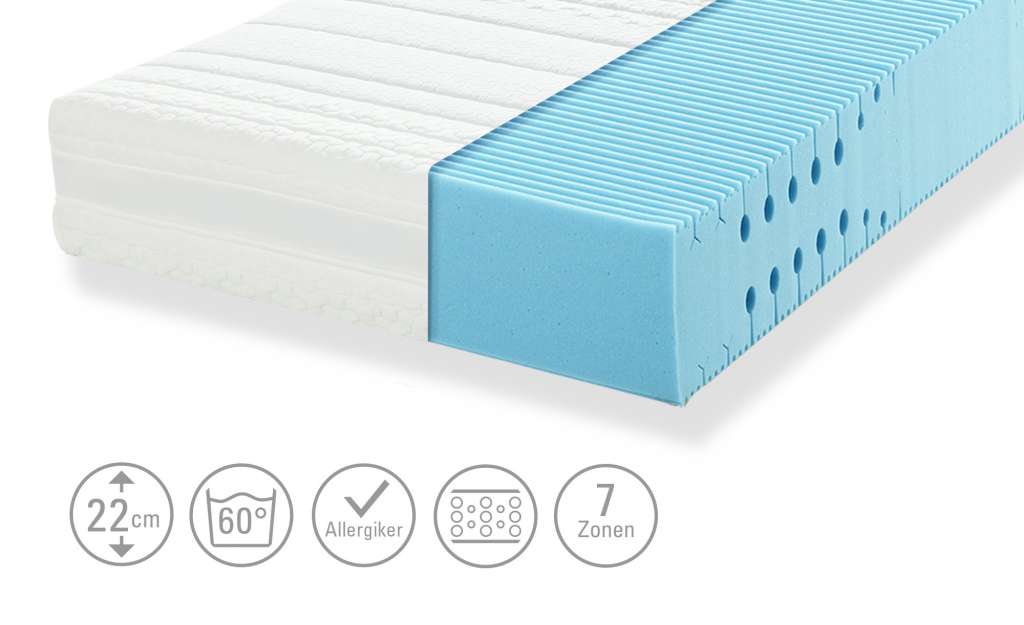 Unser Produkt Seitenschläfer-Kaltschaummatratze Side-Sleep gibt es in den Farben: weiß Der Hersteller ist bekannt für die hohe Qualität der verwendeten Materialien. Zudem hat das Produkt folgende Besonderheiten: Matratzenbezug abnehmbar und waschbar bis 60 Grad, Oberfläche in Lamellenschnitttechnik für einen guten Luft-/Wärme-Austausch, sehr nachgiebiger Lagerungsbereich für die Schulter in Seitenlage. · Prüfsiegel: Made in Germany, Öko-Tex Standard 100 · Aktion: Newsletter-Anmeldung 10€ Willkommens-Gutschein. · Aktion: 0% Finanzierung im Online-Shop, eff. Jahreszins und gebundener Sollzinssatz (jährl.) 0,00 % bis zu 50 Monate. Ab einer Finanzierungssumme von 100€. · Aktion: 3% Kundenkarten-Rabatt. · Der Artikel befindet sich in der Höffner-Kategorie: Matratzen & Zubehör - Matratzen-Arten - Kaltschaum-Matratzen.