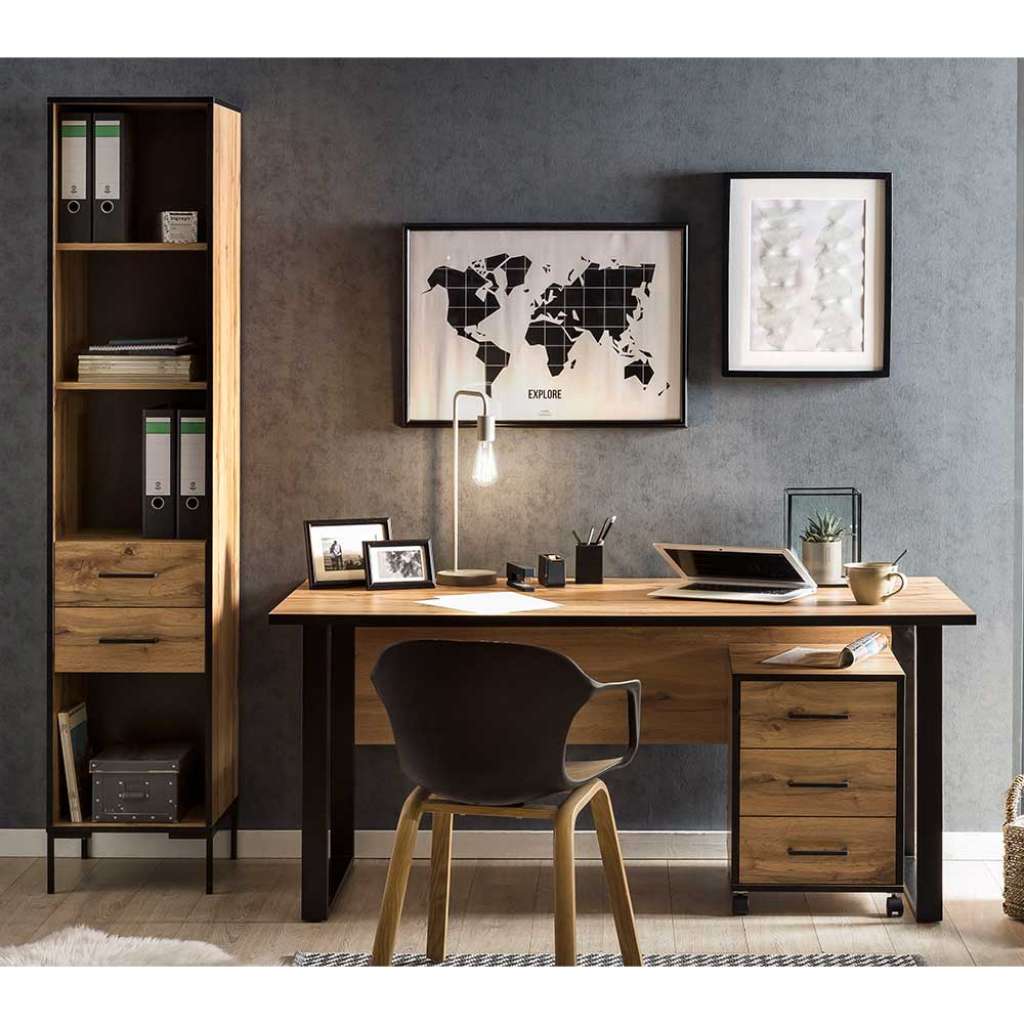 (dreiteilig) - Büroausstattung 160 cm Breit, 75 cm Hoch, 73 cm Tief - Breite Variante ist mind. benötigte Gesamtfläche, Einzelmaße sind unten separat aufgeführt - Büromöbel Komplettset in Eichefarben und Schwarz - Büromöbel Sets aus Metall und Spanplatte - Melaminbeschichtet - Aus deutscher Produktion - In modernem Design - Zerlegt, zum leichten Selbstaufbau (Montageanleitung liegt bei) - DreiteiligInformationen zur Lieferung:Der Versand dieses Artikels erfolgt per DHL Paketdienst (Deutsche Post). Sollten Sie bei der Erstzustellung nicht angetroffen werden, hinterläßt der Zusteller in Ihrem Briefkasten eine Benachrichtigungskarte. Sie können die Ware dann in Ihrer Postfiliale vor Ort abholen. Die Auslieferung erfolgt von Montags bis Samstags. Eine Zustellung an Sonn- und Feiertagen ist nicht möglich.