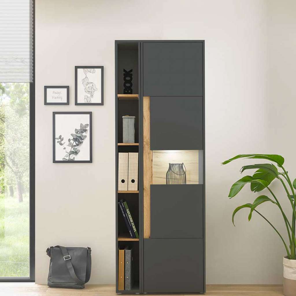 (zweiteilig) - Zweiteilig - Zerlegt, zum leichten Selbstaufbau (Montageanleitung liegt bei) - Bürokombination in modernem Design - Melaminbeschichtet - Mit Türen wahlweise rechts und links montierbar - Arbeitszimmermöbel Set aus Holzwerkstoff - Büromöbel Komplettset in Anthrazit und Wildeichefarben - Breite Variante ist mind. benötigte Gesamtfläche, Einzelmaße sind unten separat aufgeführt - Büroausstattung 70 cm Breit, 200 cm Hoch, 40 cm TiefVarianten - 001: Standardausführung - 002: mit LED Beleuchtung / für Energieeffizienzklasse LEDInformationen zur Lieferung:Der Versand dieses Artikels erfolgt per DHL-Superservice. Dieses beinhaltet folgenden Service für Sie:Terminvereinbarung: Sie werden frühzeitig (ein paar Tage im Voraus) durch die ausliefernde Spedition kontaktiert und Ihnen der Auslieferzeitpunkt mitgeteilt. Die Kontaktaufnahme erfolgt per Telefon. Bei telefonischer Nichterreichbarkeit werden Sie per Postkarte über das Auslieferdatum informiert.Lieferung Frei Verwendungsstelle: Der Transport erfolgt an Ort und Stelle. Sie bestimmen, wohin Sie die Ware getragen haben möchten. Ob Dachgeschoss, Erdgeschoss, Schlaf- oder Wohnzimmer - die Ware wird an den von Ihnen gewünschten Ort vertragen.Zwei Speditionsfahrer vertragen die Ware: keine Mithilfe beim Entladen und Vertragen der Ware nötig. Die Speditionsfahrer sind auf den Möbeltransport spezialisiert und entsprechend geschult, somit sind Transportreklamationen nahezu ausgeschlossen.Die Auslieferung erfolgt von Montags bis Freitags. Eine Zustellung an Sonn- und Feiertagen ist nicht möglich.Alle aufgeführten Serviceleistungen sind im Artikelpreis enthalten. Es fallen keine weiteren Kosten für Sie an. Bei Insellieferungen kann nur ein reiner Abgabeservice angeboten werden - das Vertragen der Ware + Verpackungsentsorgung entfällt hierbei.