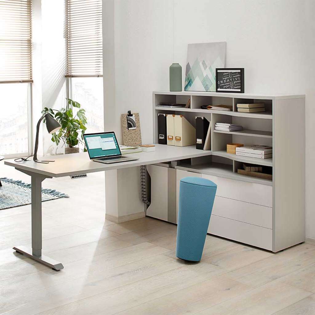 Bürokombination in Weiß und Grau höhenverstellbaren Schreibtisch (2-teilig)