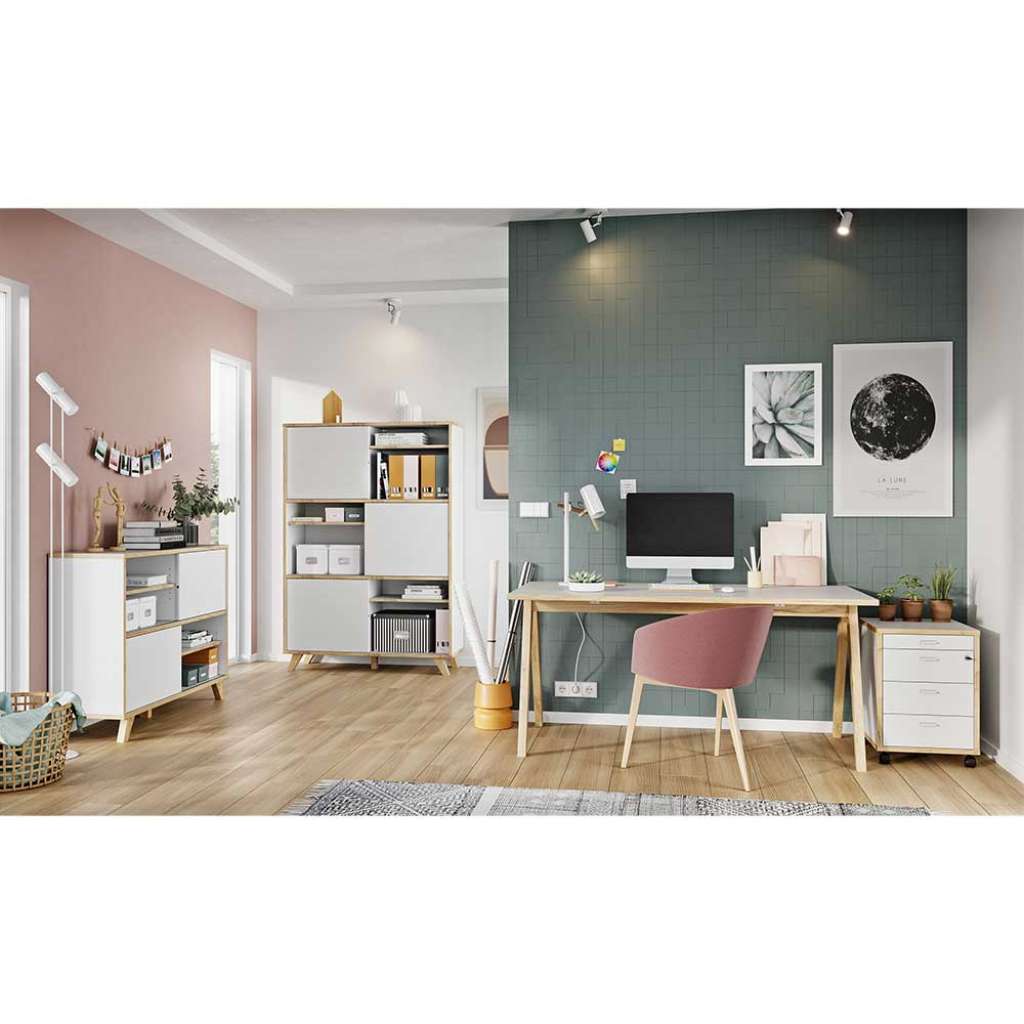 Büromöbel Sets in Weiß und Wildeiche Optik Skandi Design (4-teilig)