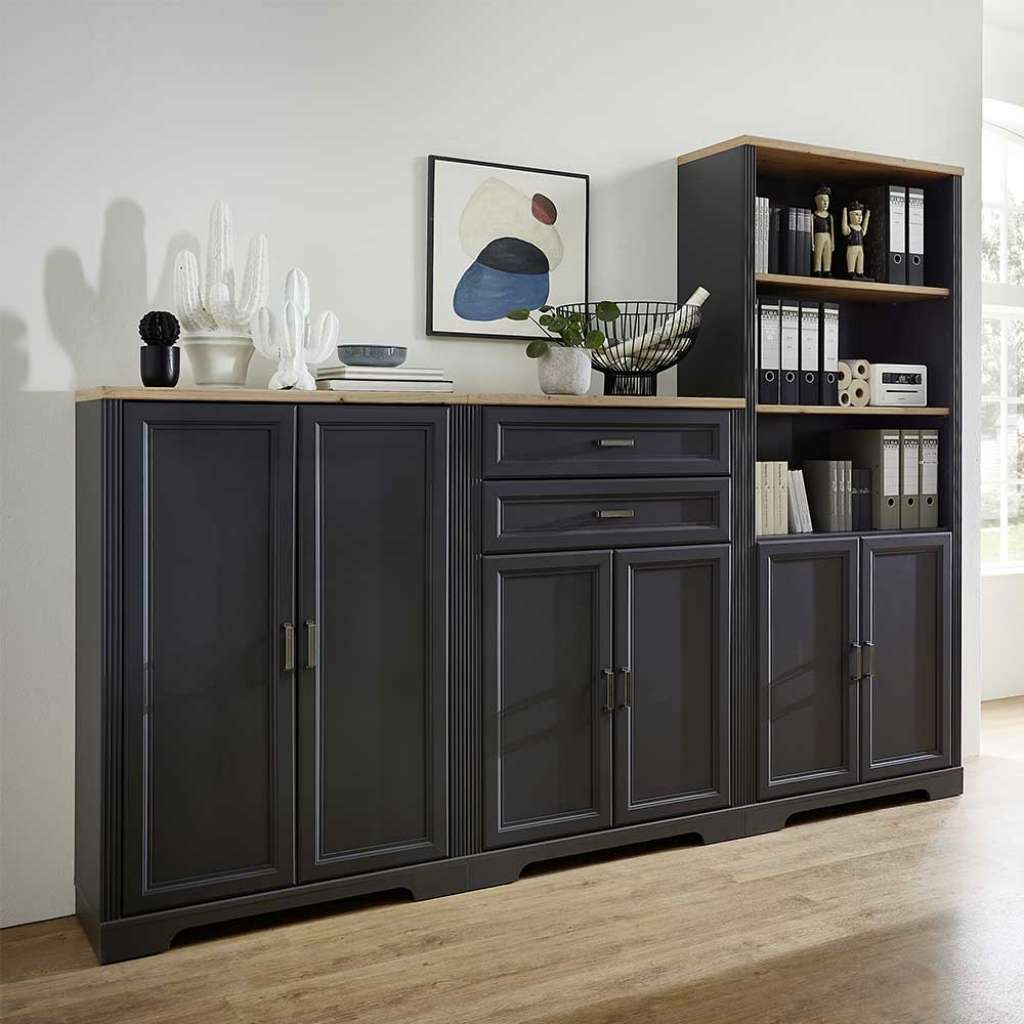 Landhaus Büro Schrankwand in Dunkelgrau Eichefarben (dreiteilig)