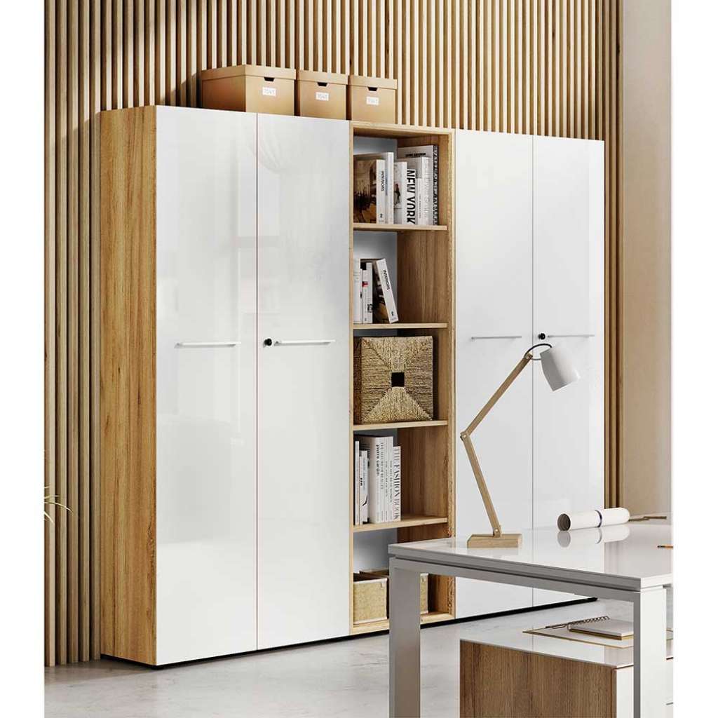 Allgemein - Büroausstattung Geräumiges Büro Set in Weiß und Wildeichefarben - Komplettbüro Gefertigt aus solider Spanplatte und Einscheibensicherheitsglas - Büromöbel set Modern - Büromöbel komplettset Dreiteilige Kombination - Bürokombination Ohne Beleuchtung - Büromöbel sets Zerlegt, zum leichten Selbstaufbau (Montageanleitung liegt bei) - Arbeitszimmermöbel set Deutsche Produktion - Büromöbel-set Melaminbeschichtete Oberfläche in Weiß und in Holzoptik Wildeiche, Türen zusätzlich mit Sicherheitsglas beschichtet - Steht auf schwarzen Kunststoffgleitern - Eine zusätzliche Wandbefestigung wird zur Sicherheit empfohlen - Einwandfreie Qualität und beste Verarbeitung - Rundum harmonisches Design Aktenregal - Maße (BxHxT): 50x196x37 cm - Vier Einlegeböden, fünf ordnerhohe Fächer - 3D-Rahmen aus ummantelter MDF mit Gehrung Aktenschrank - Maße (BxHxT): 80x196x37 cm - Zwei Stück im Set enthalten - Hochwertige ABS-Kanten - Zwei abschließbare Türen mit gedämpften Metallbeschlägen - Dezente Bügel-Metallgriffe in Chromfarben - Hinter jeder Doppeltür vier durchgehende EinlegebödenInformationen zur Lieferung:Die Zustellung dieses Produktes erfolgt per Spedition. Sie werden vor der Auslieferung durch die ausliefernde Spedition kontaktiert.Terminvereinbarung: Sie werden frühzeitig (ein paar Tage im Voraus) durch die ausliefernde Spedition kontaktiert und Ihnen der Auslieferzeitpunkt mitgeteilt. Die Kontaktaufnahme erfolgt per Telefon. Bei telefonischer Nichterreichbarkeit werden Sie per Postkarte über das Auslieferdatum informiert.Die Lieferung erfolgt aus Kostengründen Frei Bordsteinkante (bis zur ersten verschlossenen Tür). Für den weiteren Transport der Ware sind Sie eigenverantwortlich.Die Auslieferung erfolgt von Montags bis Freitags. Eine Zustellung an Sonn- und Feiertagen ist nicht möglich.