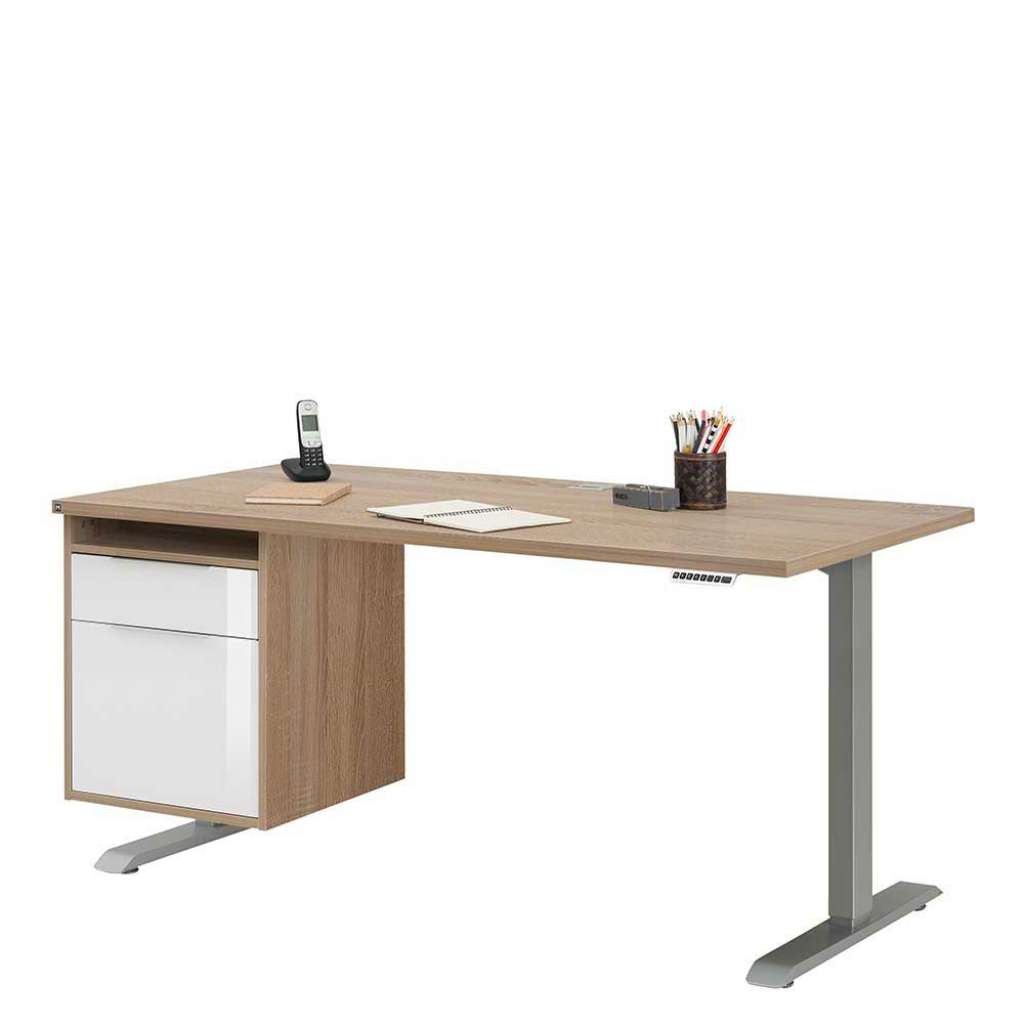 Büroschreibtisch in Sonoma-Eiche und Weiß Hochglanz höhenverstellbar