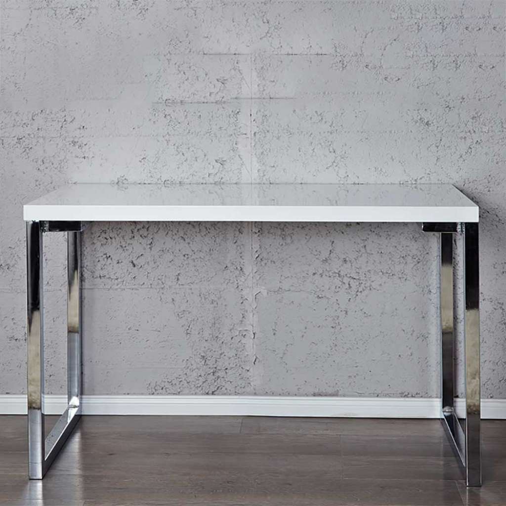 Bürotisch in Weiß Hochglanz verchromtem Bügelgestell