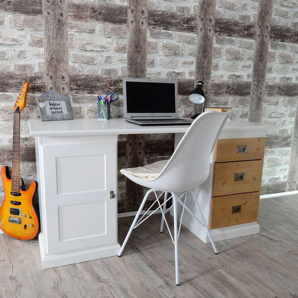 Jugendschreibtisch in Weiß und Eichefarben Skandi Design
