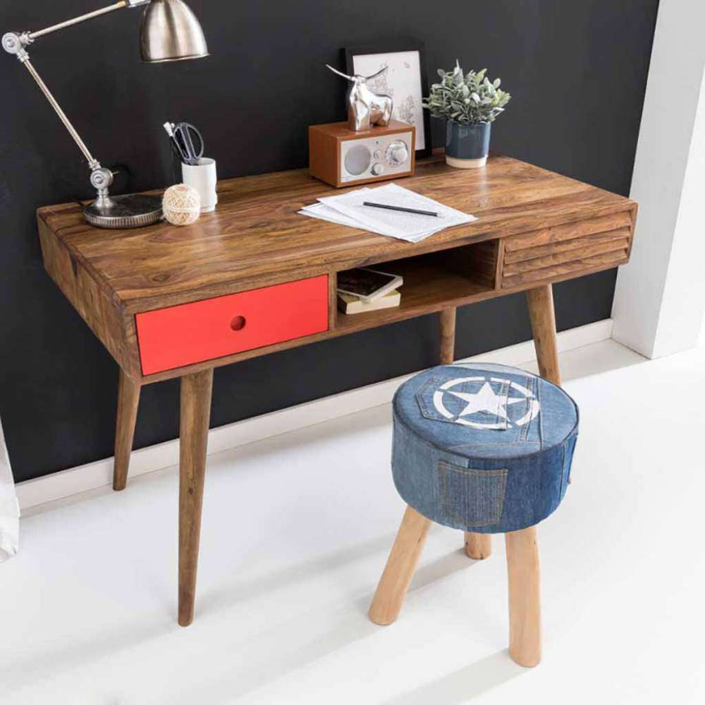 PC Tisch aus Sheesham Massivholz Schublade Rot