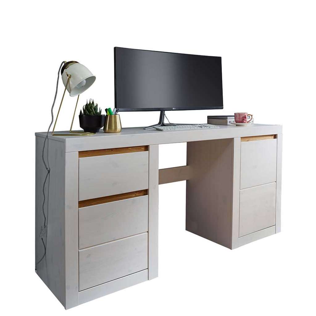 Schreibtisch aus Kiefer Massivholz Weiß