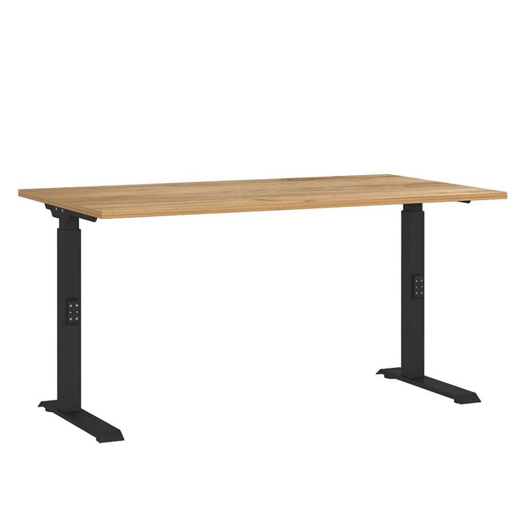 Schreibtisch Büroschreibtisch höhenverstellbar mit T Gestell - Zerlegt, zum leichten Selbstaufbau (Montageanleitung liegt bei) - In rechteckiger Form - Tischgestell in modernem Design - Tisch aus Spanplatte und Metall - Bürotisch in Wildeichefarben und Schwarz - Aus deutscher Produktion - Höhenverstellbar - Per Raster höhenverstellbar - Mit T Gestell - Mit stoßfesten ABS Kanten - In Holzoptik melaminbeschichtet - Schreibtisch 68 cm Hoch, 80 cm TiefVarianten - 001: Breite: 120 - 002: Breite: 140 - 003: Breite: 160 - 004: Breite: 180Informationen zur Lieferung:Die Zustellung dieses Produktes erfolgt per Spedition. Sie werden vor der Auslieferung durch die ausliefernde Spedition kontaktiert.Terminvereinbarung: Sie werden frühzeitig (ein paar Tage im Voraus) durch die ausliefernde Spedition kontaktiert und Ihnen der Auslieferzeitpunkt mitgeteilt. Die Kontaktaufnahme erfolgt per Telefon. Bei telefonischer Nichterreichbarkeit werden Sie per Postkarte über das Auslieferdatum informiert.Die Lieferung erfolgt aus Kostengründen Frei Bordsteinkante (bis zur ersten verschlossenen Tür). Für den weiteren Transport der Ware sind Sie eigenverantwortlich.Die Auslieferung erfolgt von Montags bis Freitags. Eine Zustellung an Sonn- und Feiertagen ist nicht möglich.