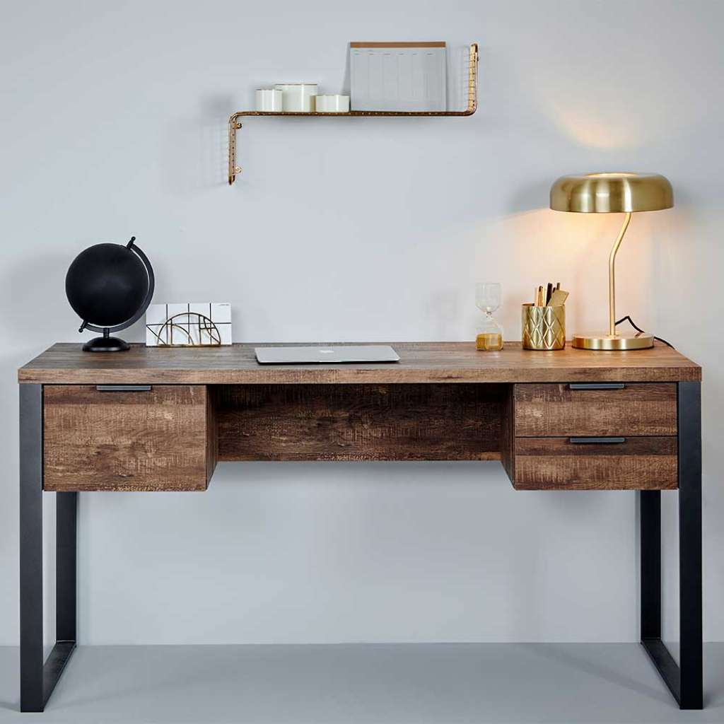 Informationen über Schreibtisch in Eiche dunkel drei Schubladen