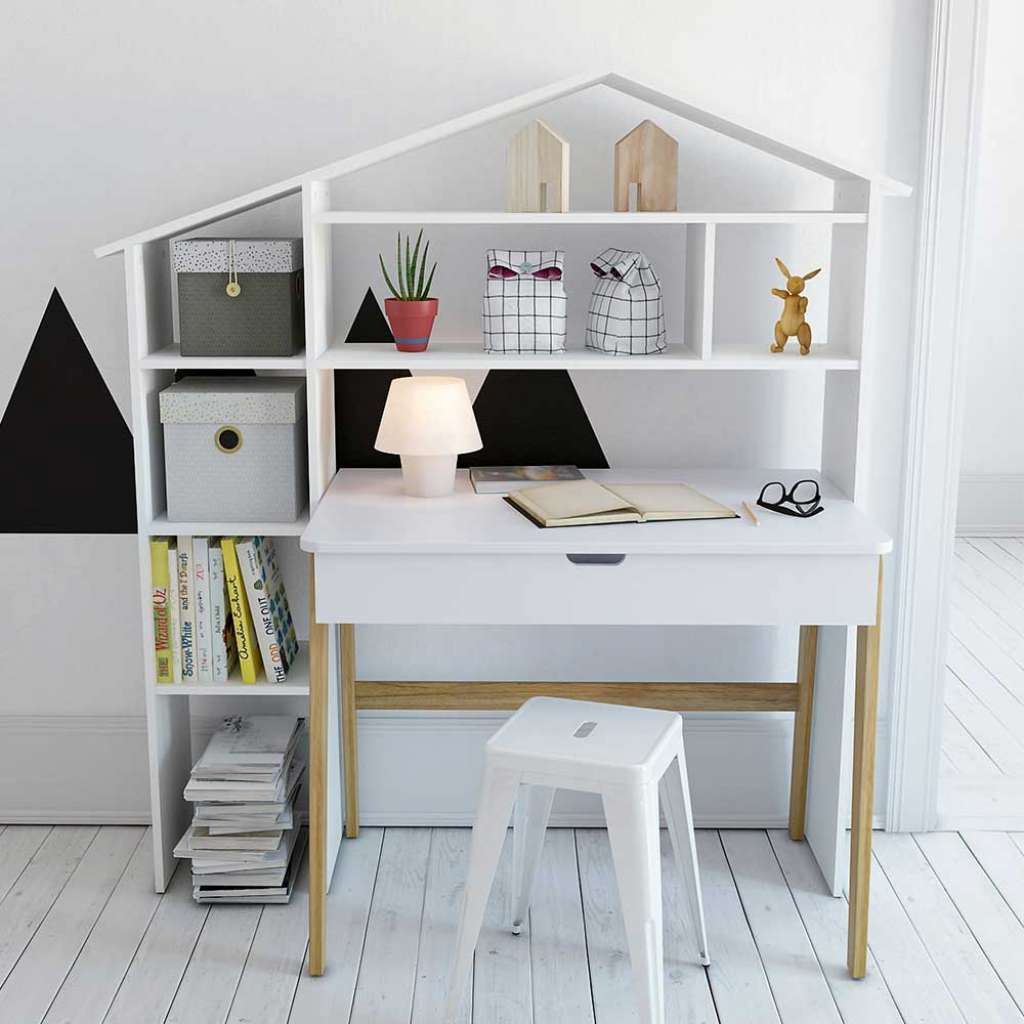 Schülerschreibtisch in Weiß Pinie teilmassiv Regal in Haus Optik (2-teilig)