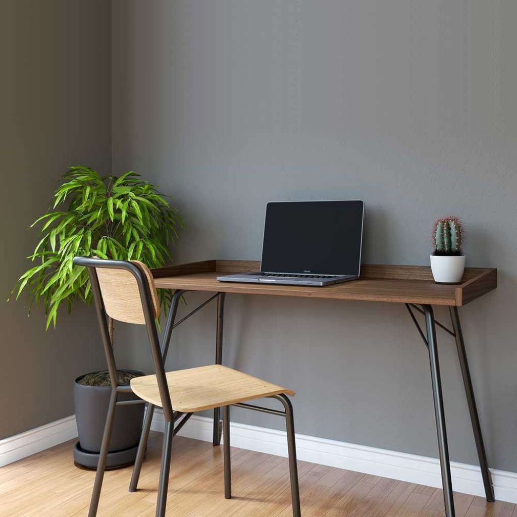 - Schreibtisch Walnussfarben - Bürotisch Metall und Spanplatte - Büroschreibtisch Skandi Design - Edv tisch Breite: 115 - Metalltisch Höhe: 75 - Laptopschreibtisch Tiefe: 52 - Designschreibtisch Rechteckige Tischform - Metallschreibtisch Ohne Beleuchtung - Zerlegt, zum leichten Selbstaufbau (Montageanleitung liegt bei) - Furniert und Lackiert - Ohne Rollen - 4-Fußgestell - Farbe der Füße: Schwarz - Farbe der Tischplatte: Walnussfarben - Tischgestell aus: Metall