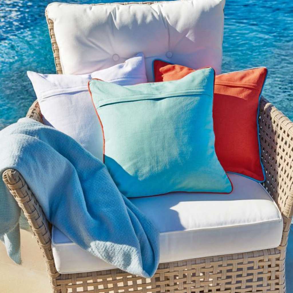 Drei Designs in fröhlichen Farben mit graphischen Mustern und Hummer-Druck. Schicker, kontrastierender Keder. Reine Baumwolle und verdeckter Reißverschluss hinten. […]