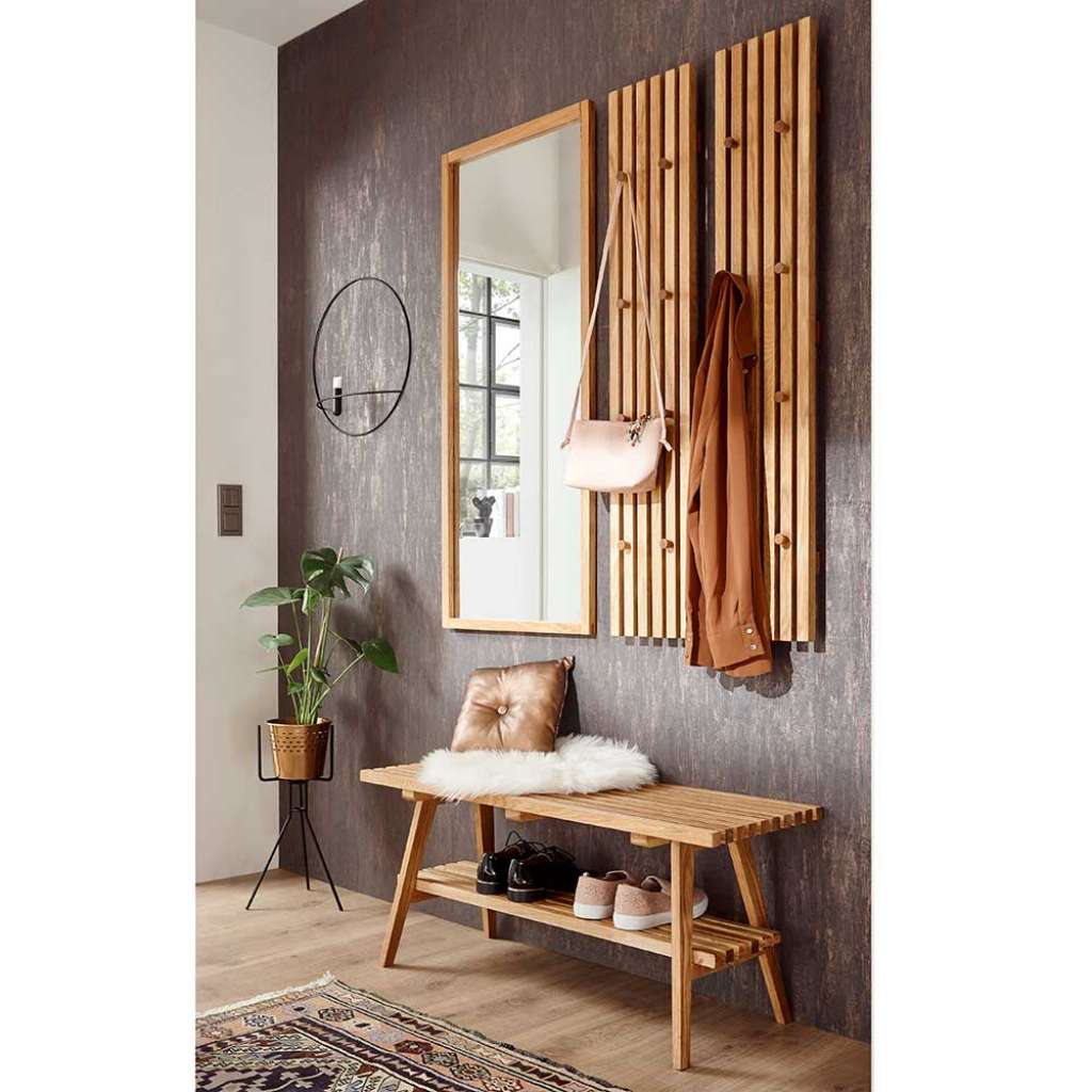 (vierteilig) - Garderobeset 122 cm Breit, 165 cm Hoch, 35 cm Tief - Dielenset im Skandi Design - Dielenmöbel Set aus Spiegelglas und Eiche Massivholz - Mit Massivholz Oberfläche geölt - Flurmöbel in Eichefarben - Inklusive Sitzbank - Breite Variante ist mind. benötigte Gesamtfläche, Einzelmaße sind unten separat aufgeführt - Zerlegt, zum leichten Selbstaufbau (Montageanleitung liegt bei) - Vierteilig