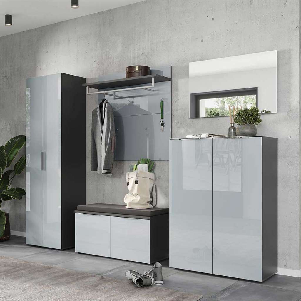 Informationen über Dieleneinrichtung in Grau Fronten glasbeschichtet (fünfteilig)