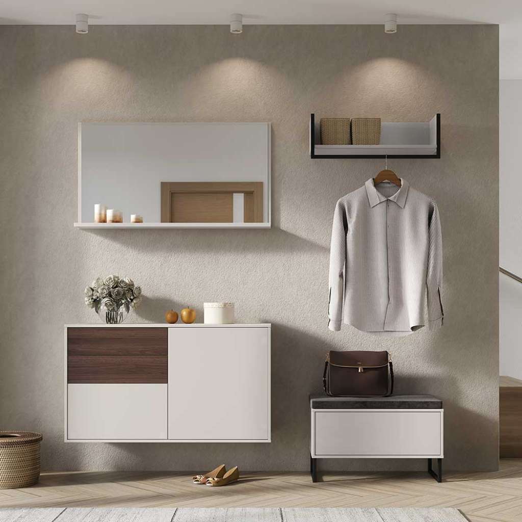 Garderoben Set in Creme und Nussbaumfarben Made in Germany (4-teilig)
