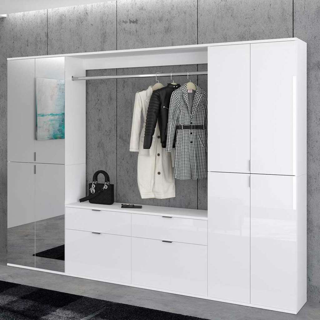 Informationen über Garderoben Set modular in Weiß Hochglanz Spiegeltüren und Kleiderstange (dreiteilig)
