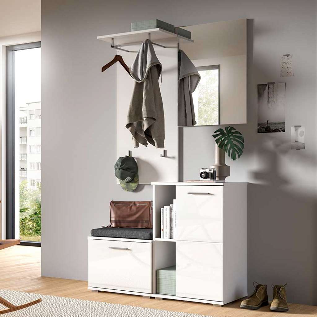 Informationen über Moderne Flurgardrobe in Weiß Hochglanz Schuhbank