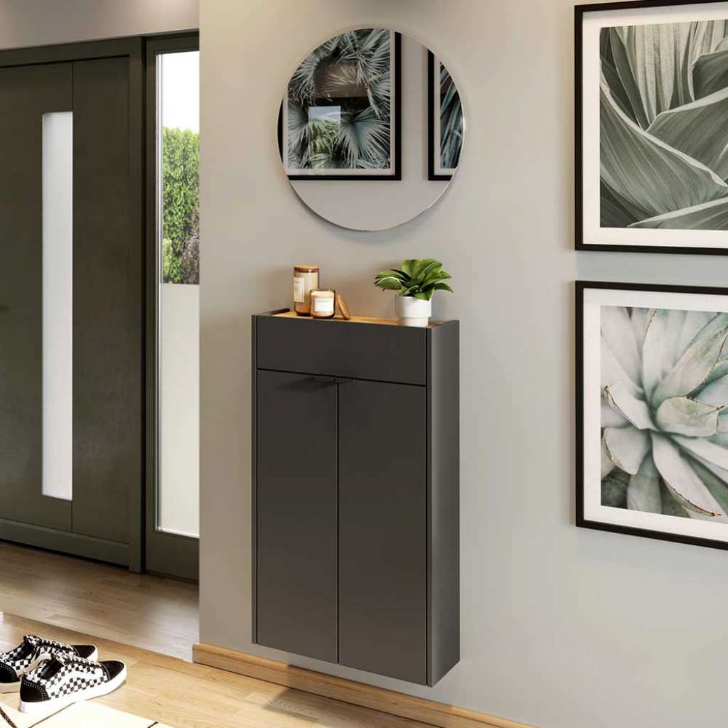 Informationen über Wand Dielenmöbelset in Wildeichefarben und Dunkelgrau 60 cm breit (zweiteilig)