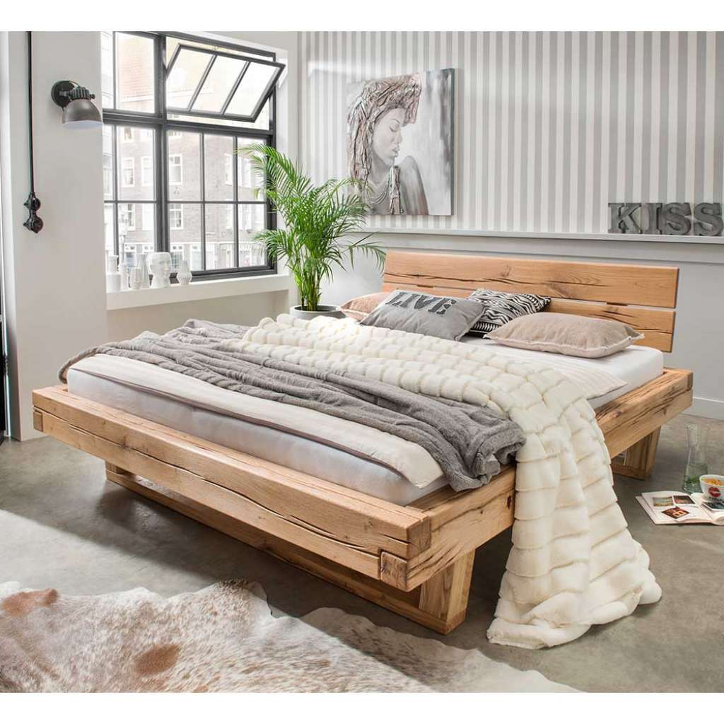 Informationen über Balkenbett mit Kopfteil aus Eiche Massivholz geölt