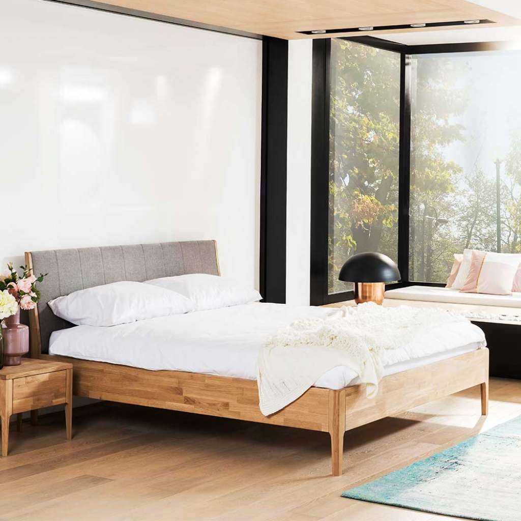 Bettgestell mit Polster Kopfteil in Wildeiche Honigfarben Massivholz - Singelbett zerlegt, zum leichten Selbstaufbau (Montageanleitung liegt bei) - Breites Bett Matratze nicht im Lieferumfang enthalten - 2 Personen Bett Lattenrost nicht im Lieferumfang enthalten - Bett in modernem Design - Mit Vierfußgestell aus Holz - Mit Massivholz Oberfläche geölt - Bettgestell aus Wildeiche Massivholz - Mit einem schrägen und gepolsterten Kopfteil, für bequemes Sitzen im Bett - Schlafzimmerbett Einlegetiefe Lattenrost (in cm) : 17 - Bodenabstand zum Seitenteil (in cm) : 21 - Großes Bett Einstiegshöhe (in cm) : 42 - Schlafbett Höhe Fußteil (in cm) : 42 - Höhe Kopfteil (in cm) : 102 - Doppel Bett in Wildeiche Honigfarben und Grau - Massivholzbett 102 cm Hoch, 214 cm TiefVarianten - 001: Breite: 106 / mit einer Liegefläche von 100x200 - 002: Breite: 126 / mit einer Liegefläche von 120x200 - 003: Breite: 146 / mit einer Liegefläche von 140x200Informationen zur Lieferung:Der Versand dieses Artikels erfolgt per DHL-Superservice. Dieses beinhaltet folgenden Service für Sie:Terminvereinbarung: Sie werden frühzeitig (ein paar Tage im Voraus) durch die ausliefernde Spedition kontaktiert und Ihnen der Auslieferzeitpunkt mitgeteilt. Die Kontaktaufnahme erfolgt per Telefon. Bei telefonischer Nichterreichbarkeit werden Sie per Postkarte über das Auslieferdatum informiert.Lieferung Frei Verwendungsstelle: Der Transport erfolgt an Ort und Stelle. Sie bestimmen, wohin Sie die Ware getragen haben möchten. Ob Dachgeschoss, Erdgeschoss, Schlaf- oder Wohnzimmer - die Ware wird an den von Ihnen gewünschten Ort vertragen.Zwei Speditionsfahrer vertragen die Ware: keine Mithilfe beim Entladen und Vertragen der Ware nötig. Die Speditionsfahrer sind auf den Möbeltransport spezialisiert und entsprechend geschult, somit sind Transportreklamationen nahezu ausgeschlossen.Die Auslieferung erfolgt von Montags bis Freitags. Eine Zustellung an Sonn- und Feiertagen ist nicht möglich.Alle aufgeführten Serviceleistungen sind im Artikelpreis enthalten. Es fallen keine weiteren Kosten für Sie an. Bei Insellieferungen kann nur ein reiner Abgabeservice angeboten werden - das Vertragen der Ware + Verpackungsentsorgung entfällt hierbei.