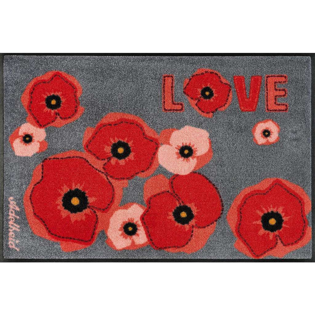 Informationen über FUßMATTE 50/75 cm Blume Grau, Rot