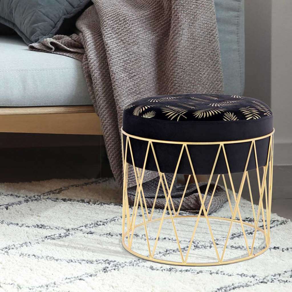 Beistellhocker in Schwarz Samt orientalisch gemustert