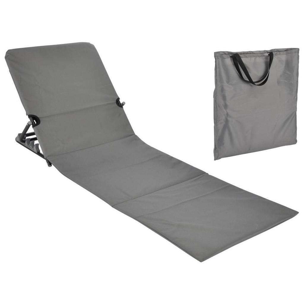 Mit dieser Strandliege (faltbar) in Grau sind Sie für die nächsten Ausflüge ins Freibad oder zum Badesee bestens gerüstet. Die bequeme Schaumstoffpolsterung macht das Relaxen noch angenehmer - und haben Sie schon entdeckt, dass sich das Kopfteil mehrfach verstellen lässt? Dadurch können Sie nicht nur ausgestreckt in der Sonne baden, sondern auch bequem abgestützt in Ihrem Lieblingsroman schmökern. Dabei ist der graue Bezug aus pflegeleichtem PVC gearbeitet - deshalb lassen sich Wassertropfen und nasser oder trockener Sand einfach abwischen. Und wenn es wieder nach Hause geht, verstauen Sie die Liege einfach zusammenfalten und in der mitgelieferten Tragetasche. So lässt sie sich bestens transportieren. Diese Strandliege (faltbar) in Grau haben Sie an warmen Tagen sicher oft dabei!