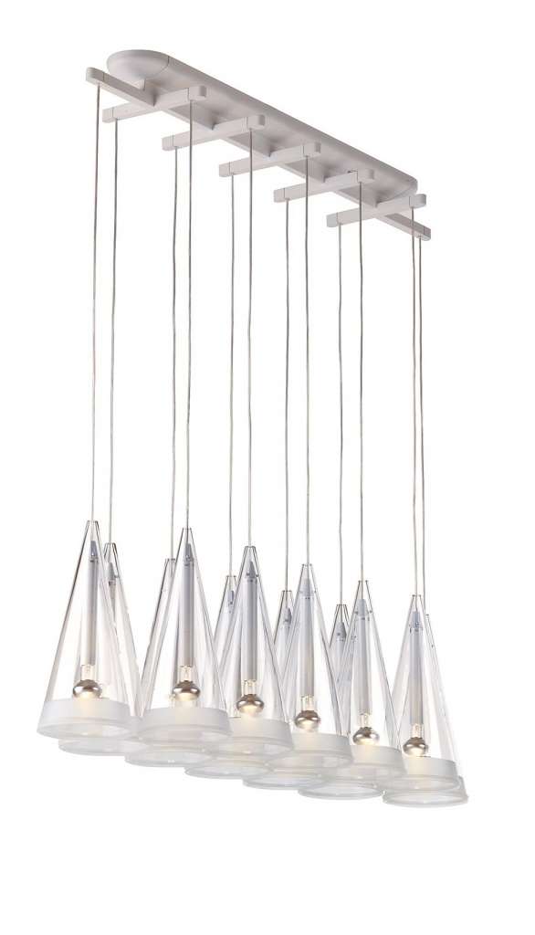 Die Fucsia Leuchte von Flos besteht aus mundgeblasenem und am unteren Rand sandgestrahltem Glas. Die zeitlose, schlichte Formgebung der Pendelleuchte, bestehend aus transparenten Glaskegeln streuen das Licht ungehindert in den Raum und sorgen für eine optimale Lichtausbeute. Wie gewohnt sorgt der renommierte Leuchtenhersteller Flos auch bei dieser Schönheit für Qualität bis ins kleinste Detail. Die Stoßschutzringe der Diffusoren bestehen aus opalfarbenem Silikon, der Leuchtkörper aus weiß pulverlackiertem Stahlrohr in Hochglanz. Ein raffiniertes Baldachinsystem aus glasfaserverstärktem Polyamid ermöglicht eine professionelle Aufhängung, egal ob Sie die Variante mit einem, drei, acht oder zwölf Leuchtkörpern wählen. Besonderheiten - Mundgeblasen - Maximale Lichtausbeute - Professionelle Aufhängung - Bis zu 12 Leuchtkörper möglich
