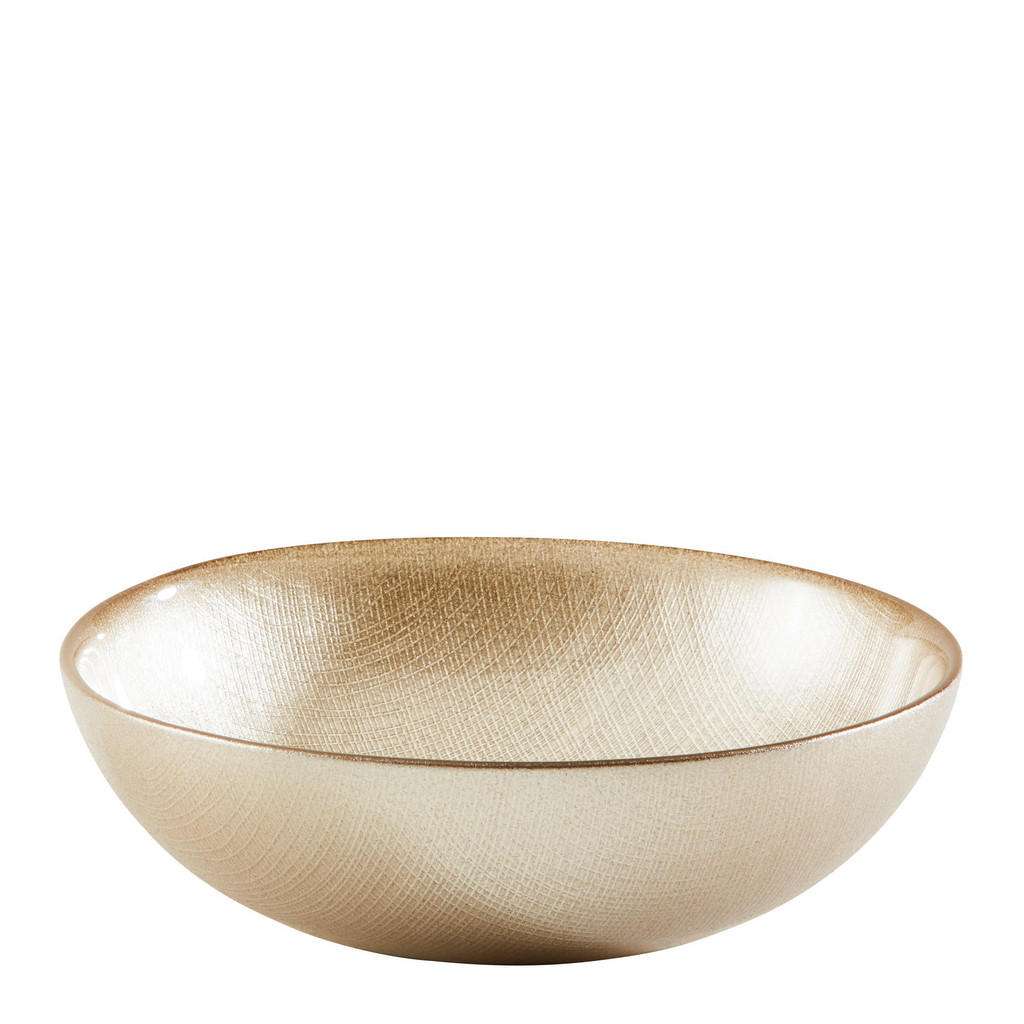 Diese chice Schale aus Glas (rund) in Beige mit einem Durchmesser von ca. 14 cm ziert Ihr Zuhause und lässt sich mit verschiedenen Accessoires kombinieren. Aus glänzendem Kalk-Soda-Glas gefertigt, überzeugt sie mit einem filigranen Gittermuster. Das Dekor verleiht ihr eine ansprechende Oberfläche. In Verbindung mit Blüten, Steinen, buntem Sand oder auch frischem Obst schmückt das schöne Stück einen Beistelltisch oder den Esstisch als Tafelaufsatz genauso wie ein Sideboard oder eine Kommode: Mit dieser Schale aus Glas (rund) in Beige realisieren Sie zauberhafte Dekorationen!