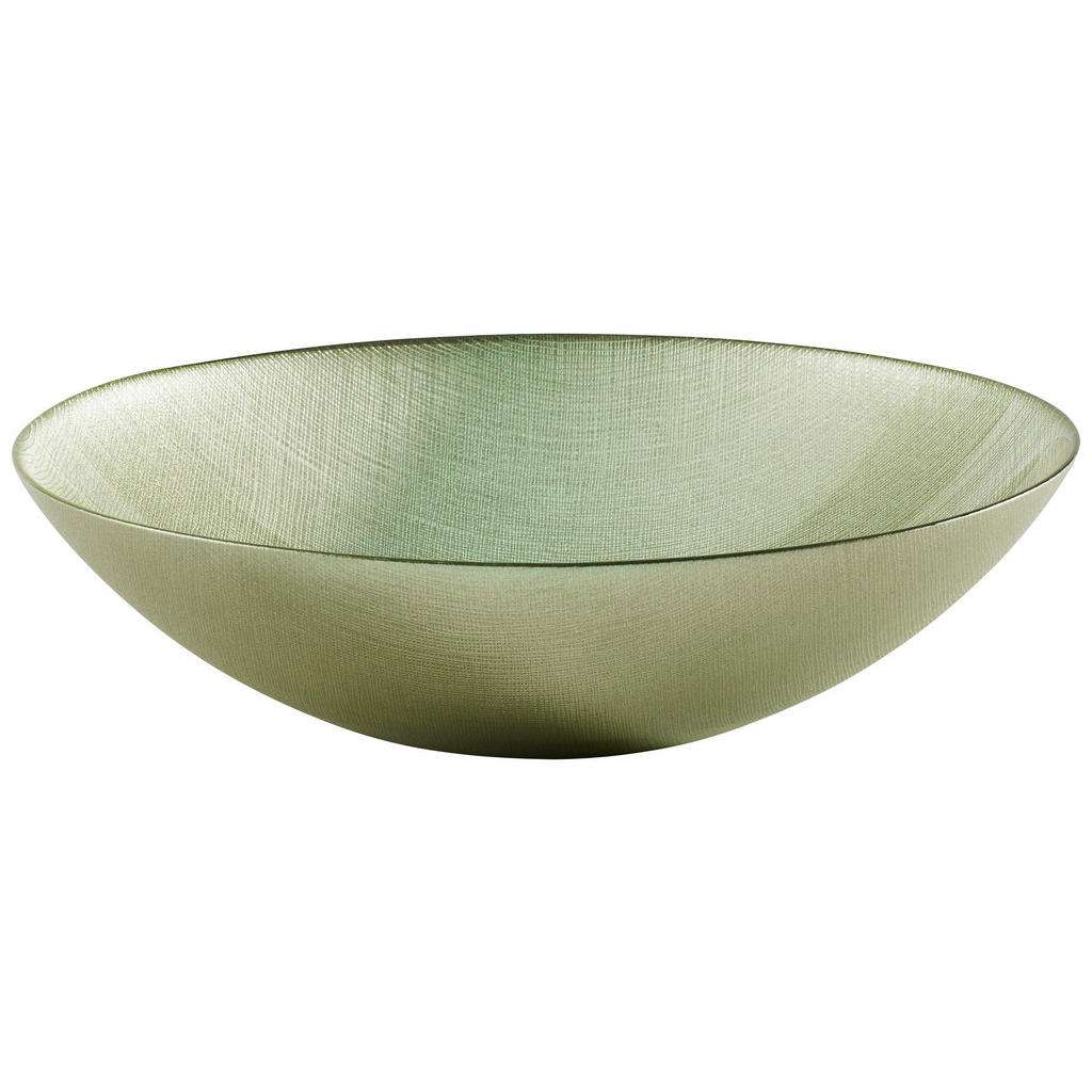 Diese chice Schale aus Glas (rund) in Grün mit einem Durchmesser von ca. 33 cm und einer Höhe von ca. 10 cm ziert Ihr Zuhause und lässt sich mit verschiedenen Accessoires kombinieren. Aus glänzendem Kalk-Soda-Glas gefertigt, überzeugt sie mit einem filigranen Gittermuster. Das Dekor verleiht ihr eine ansprechende Oberfläche. In Verbindung mit Blüten, Steinen, buntem Sand oder auch frischem Obst schmückt das schöne Stück einen Beistelltisch oder den Esstisch als Tafelaufsatz genauso wie ein Sideboard oder eine Kommode: Mit dieser Schale aus Glas (rund) in Grün realisieren Sie zauberhafte Dekorationen!