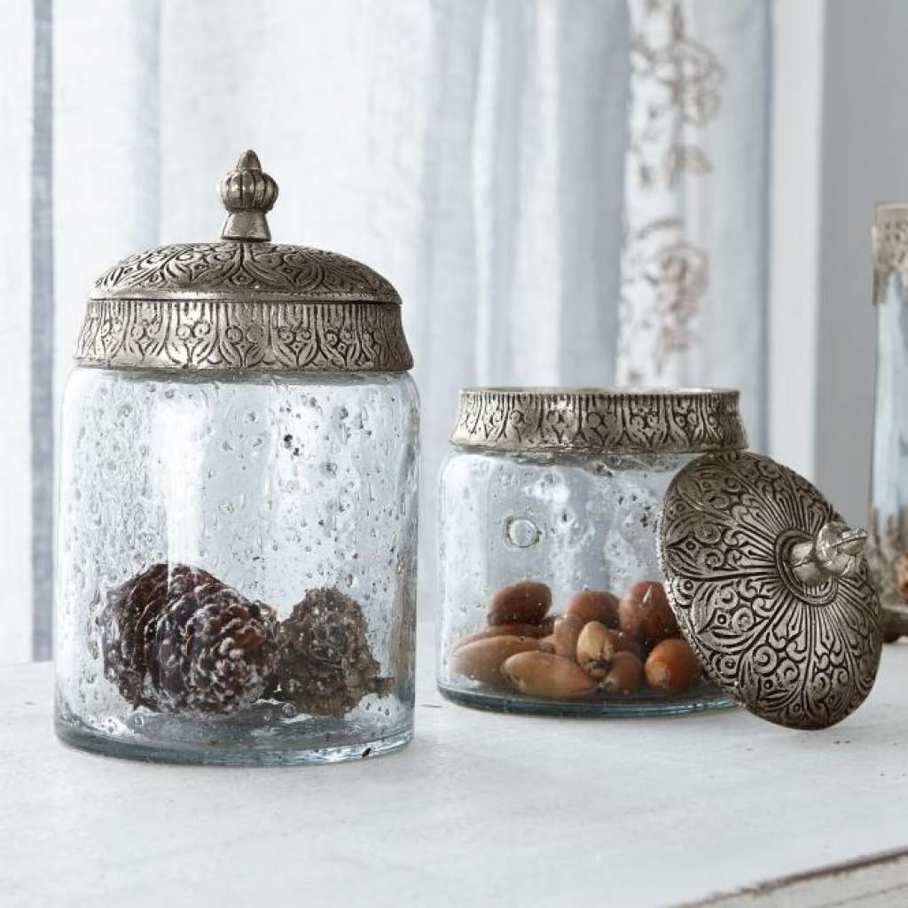 Fein strukturiertes Glas und kunstvoll verzierte Metallhauben machen dieses Set zu einer echten Besonderheit. Egal, ob Sie darin kleine Deko-Objekte oder Teelichter […]