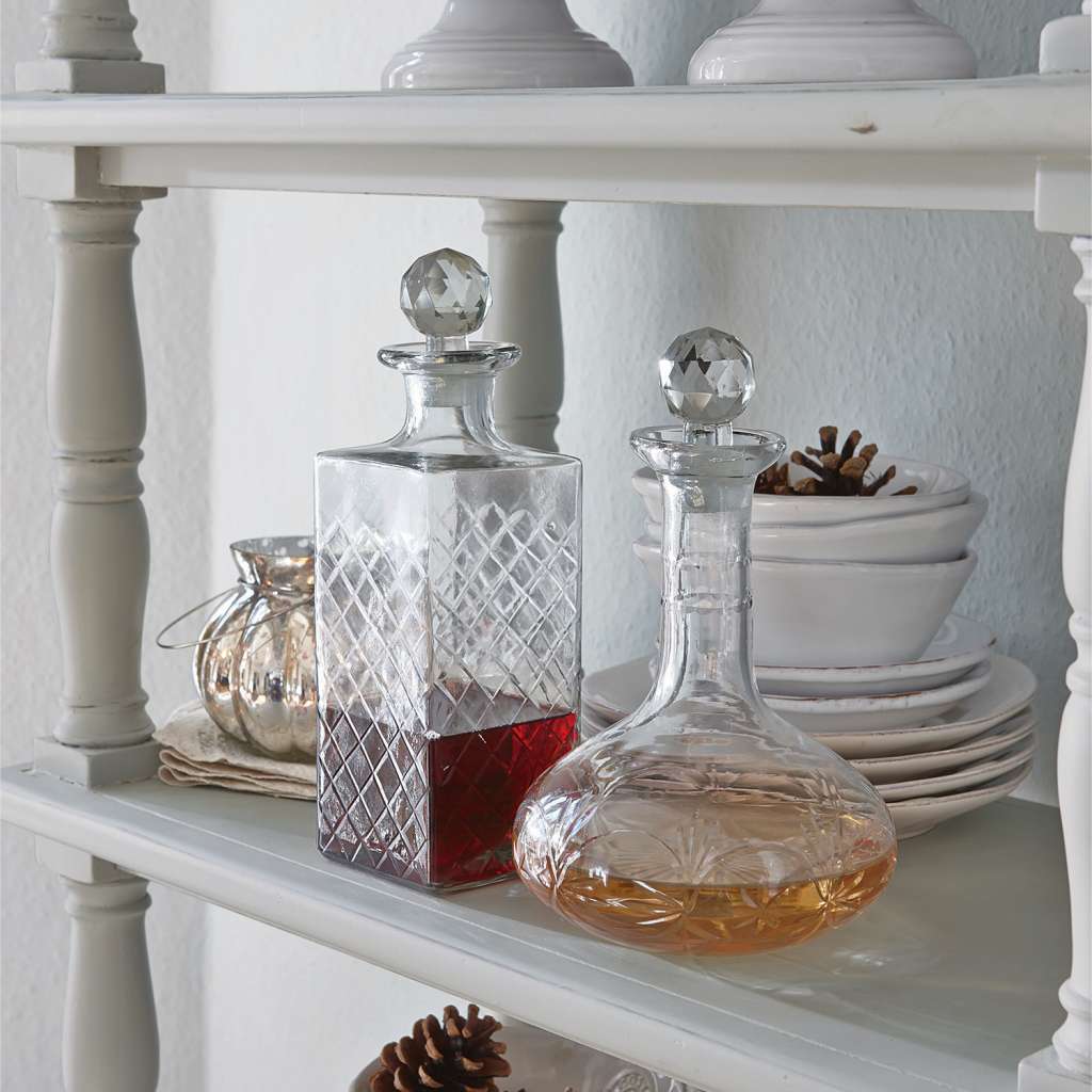 Das Set umfasst zwei hochwertige Glaskaraffen mit kunstvollen Verschlüssen. Die wohlgeformten Gefäße wurden mit einem herrlichen Schliff versehen, der das reizende […]