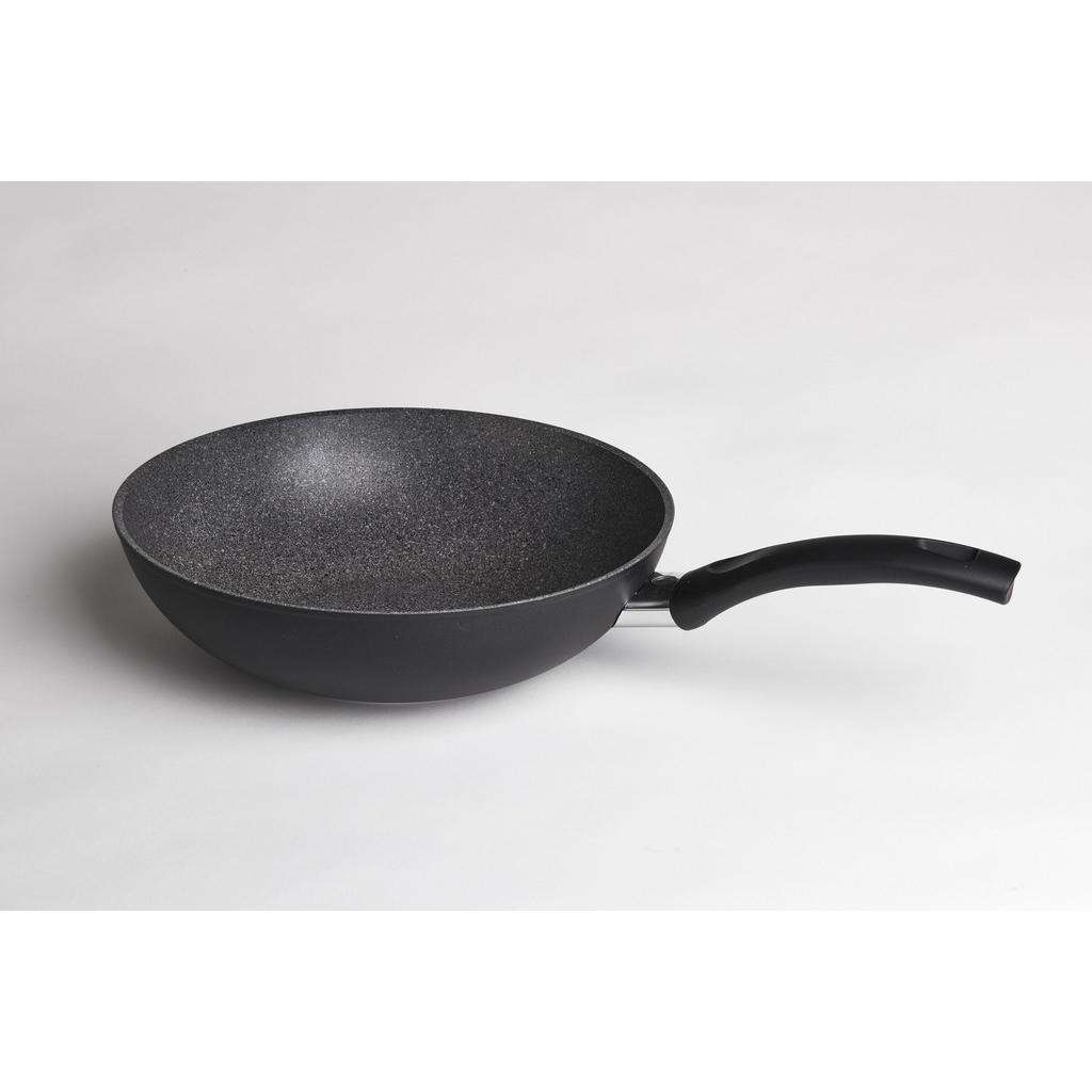 Mit dieser Wokpfanne (beschichtet) von BALLARINI profitieren Sie von ausgezeichneten Voraussetzungen für das Gelingen Ihrer Leibgerichte. Der Wok aus Aluminium mit einem Durchmesser von ca. 28 weist eine 5-fache Granitium-Antihaftversiegelung auf, sodass Sie Gemüse und Pasta darin leicht zubereiten. Während die Außenseite in mattem Schwarz pulverbeschichtet wurde, überzeugt die Innenseite in einer attraktiven Steinoptik. Der polierte Bimetall-Boden aus Alu und Stahl heizt sich schnell auf und ermöglicht den Einsatz auf verschiedenen Herdarten: ✓ Elektro-Edelstahlkochfeld ✓ Elektro-Glaskeramikkochfeld ✓ Gaskochfeld ✓ Halogenkochfeld ✓ Induktionskochfeld Wann die optimale Temperatur erreicht ist, zeigt der Thermopoint am ergonomischen, thermoisolierten Sicherheitsstiel mit rutschhemmender Gummierung an: Verfärbt sich der Punkt rot, kann es losgehen; in der Abkühlphase wird er dunkelgrün. Kalorienarm und schonend Kochen - diese widerstandsfähige und spülmaschinengeeignete Wokpfanne (beschichtet) von BALLARINI weist Ihnen den Weg zu einer gesunden Ernährung mit viel Geschmack!