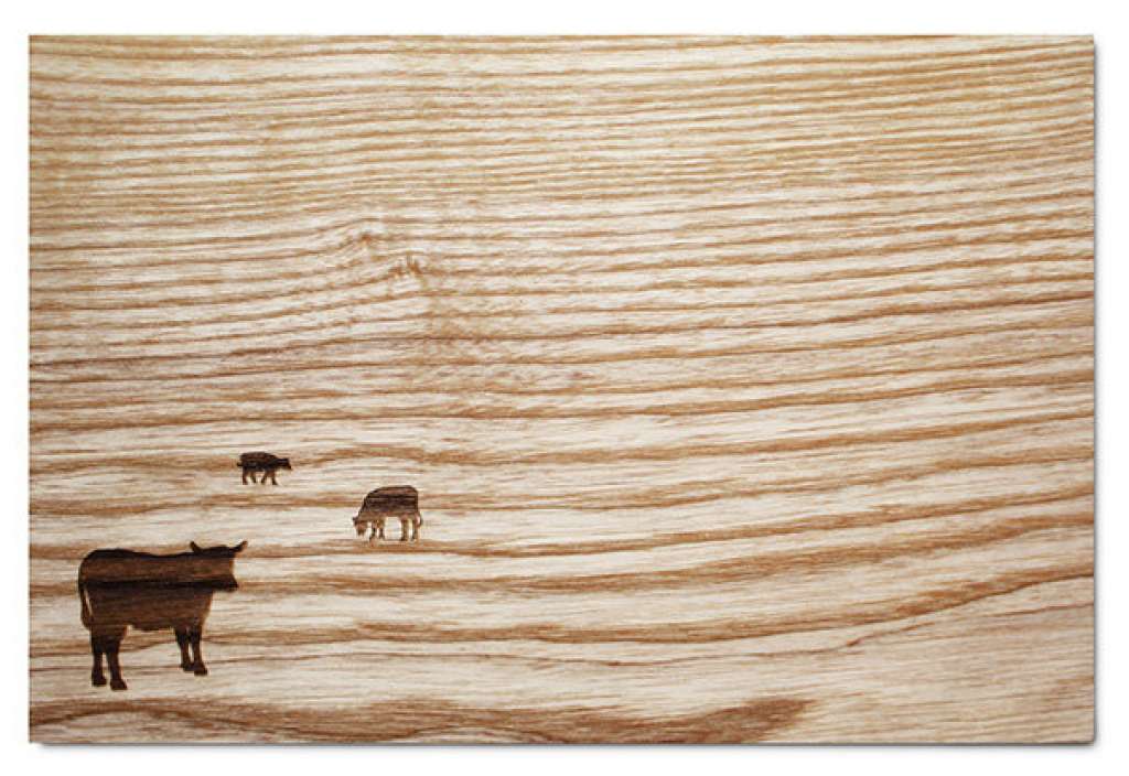 Pension für Produkte - Schöne Aussicht Frühstücksbrett - Esche - Kühe - indoor