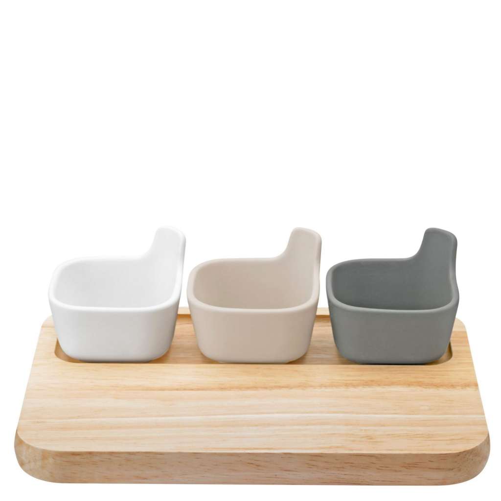 - Praktische Servierplatte - drei durchgefärbte Keramikschalen - ideal für Gäste - mit Vertiefung für die Schalen - perfekt für Pesto & Oliven - bringt den spanischen Flair nach Hause