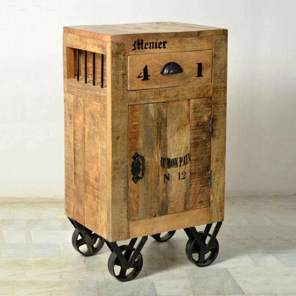 Informationen über Hochkommode auf Rollen Mangobaum Massivholz